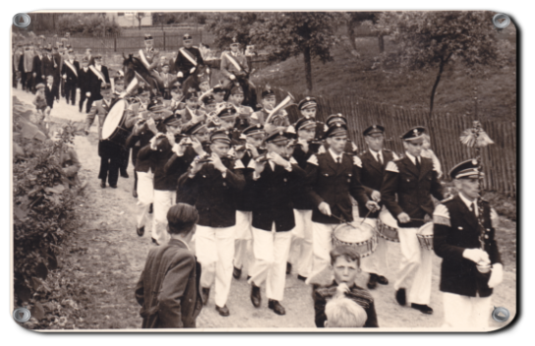 1948 Durch einen erfolgreichen Neuaufbau nach dem 2. Weltkrieg kann der Spielmannszug bereits beim ersten Nachkriegs-Schützenfest in Oberntudorf wieder mitwirken.